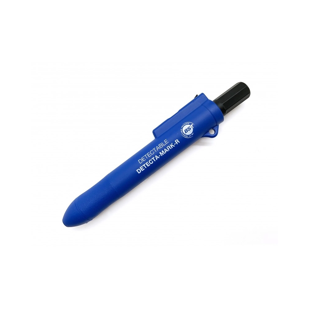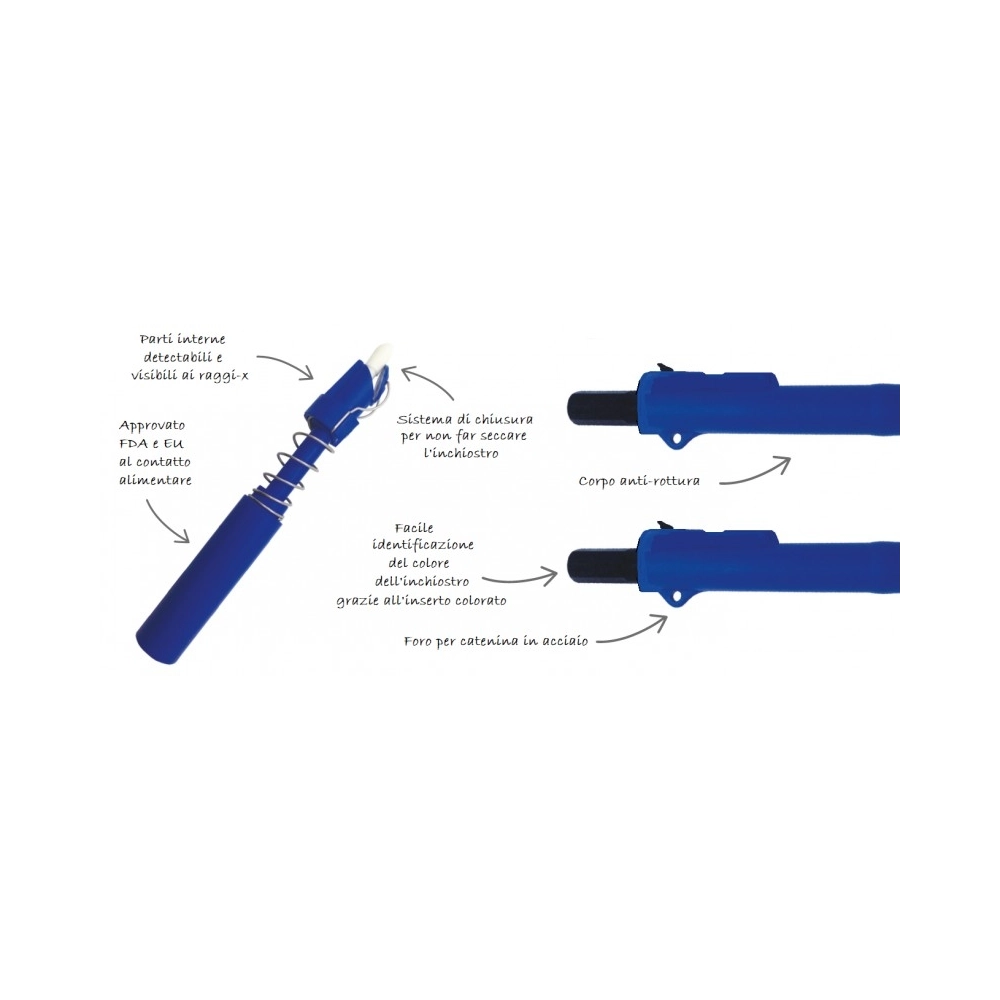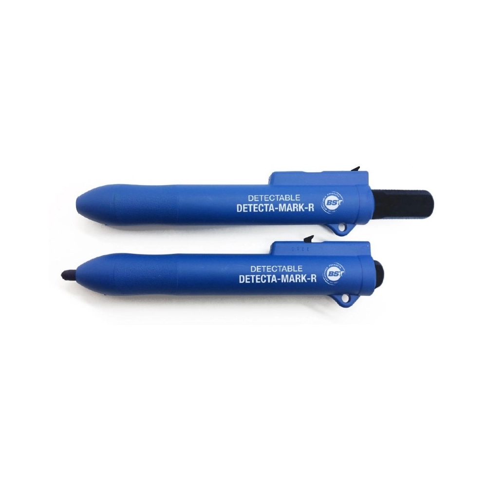 Pennarello indelebile retrattile progettato appositamente per ambienti sottoposti a rigidi controlli igienico-sanitari, come industrie alimentari, farmaceutiche e cosmetiche. L’intero corpo è realizzato in materiale detectabile al metal detector e visibile ai raggi X, contribuendo in modo attivo alla prevenzione della contaminazione da corpi estranei.