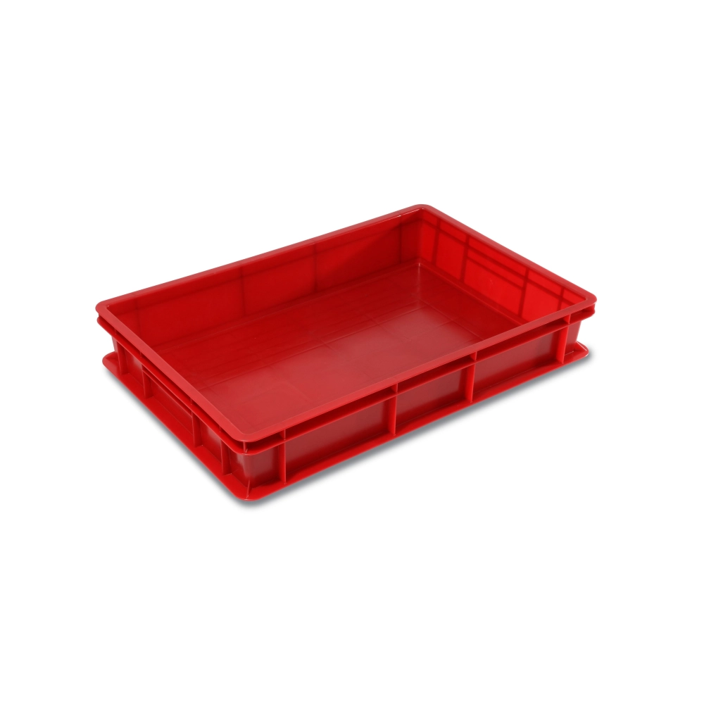 Realizzata in HDPE (polietilene ad alta densità). Sovrapponibile. Idonea al contatto con alimenti. Resistente ad urti, grassi, olii, sali alcali e umidità. Fondo e pareti chiuse per contenere alimenti solidi (es:frutta; verdura). Con spigoli arrotondati. Colorante: master atossico per alimenti. Dim. 600x400xh.100 mm. Capacità: 20 litri. QUANTITA' MINIMA ORDINABILE: 1 pezzo