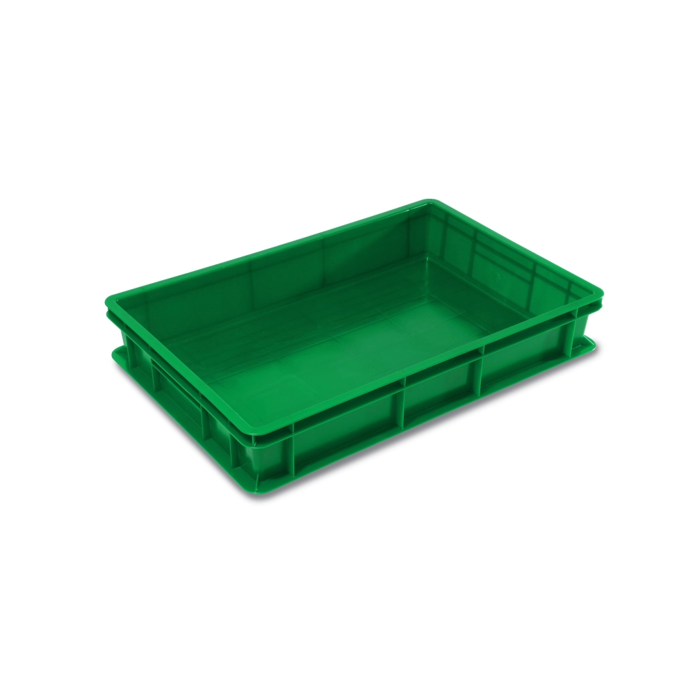 Realizzata in HDPE (polietilene ad alta densità). Sovrapponibile. Idonea al contatto con alimenti. Resistente ad urti, grassi, olii, sali alcali e umidità. Fondo e pareti chiuse per contenere alimenti solidi (es:frutta; verdura). Con spigoli arrotondati. Colorante: master atossico per alimenti. Dim. 600x400xh.100 mm. Capacità: 20 litri. QUANTITA' MINIMA ORDINABILE: 1 pezzo