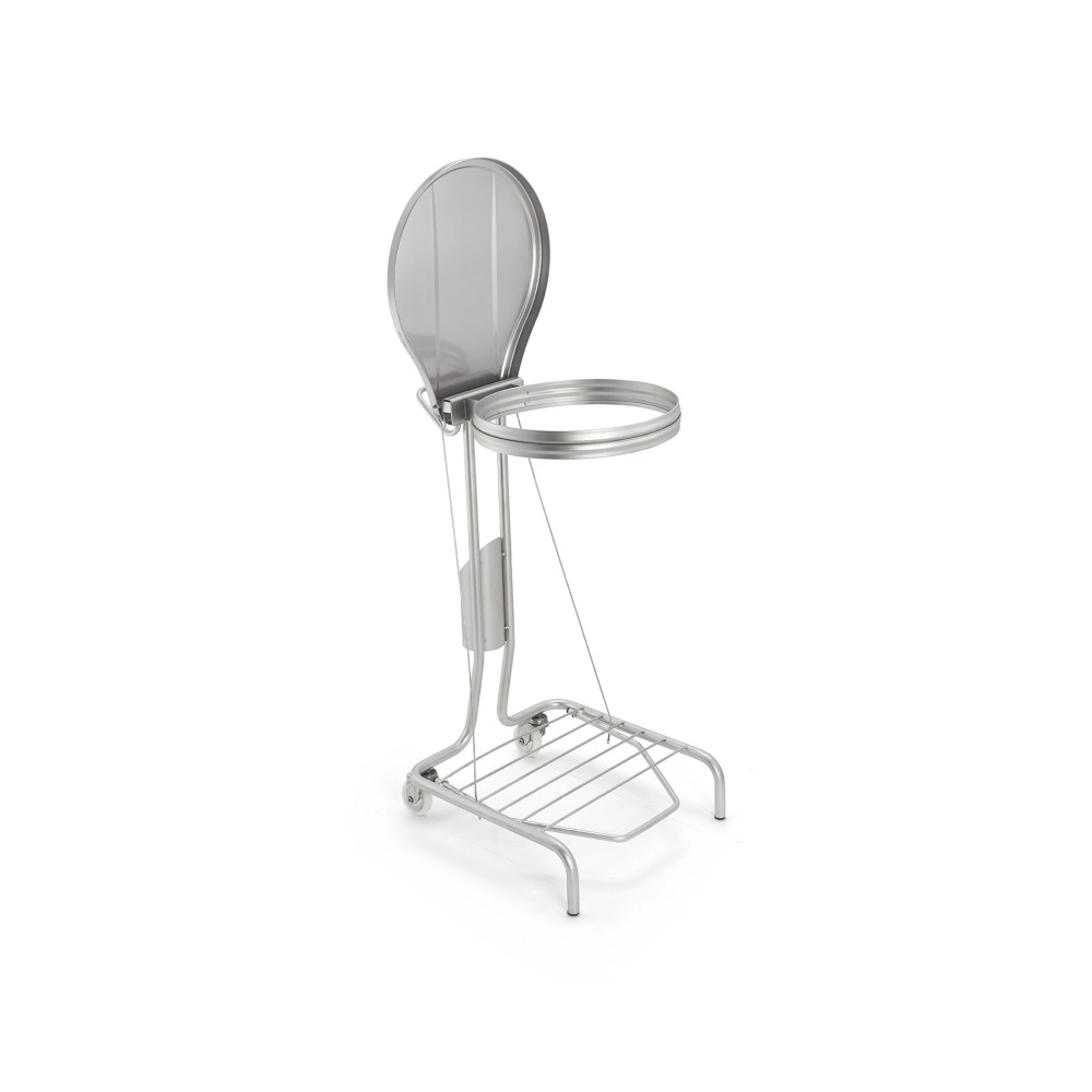 Il modello è inoltre dotato di fermasacco in acciaio inox ad incastro, che assicura una perfetta tenuta del sacco e facilita il cambio rapido, evitando slittamenti o fuoriuscite accidentali. Le ruote posteriori e la maniglia ergonomica rendono agevole lo spostamento anche a pieno carico, ideale per operatori che lavorano in ambienti ampi e dinamici.