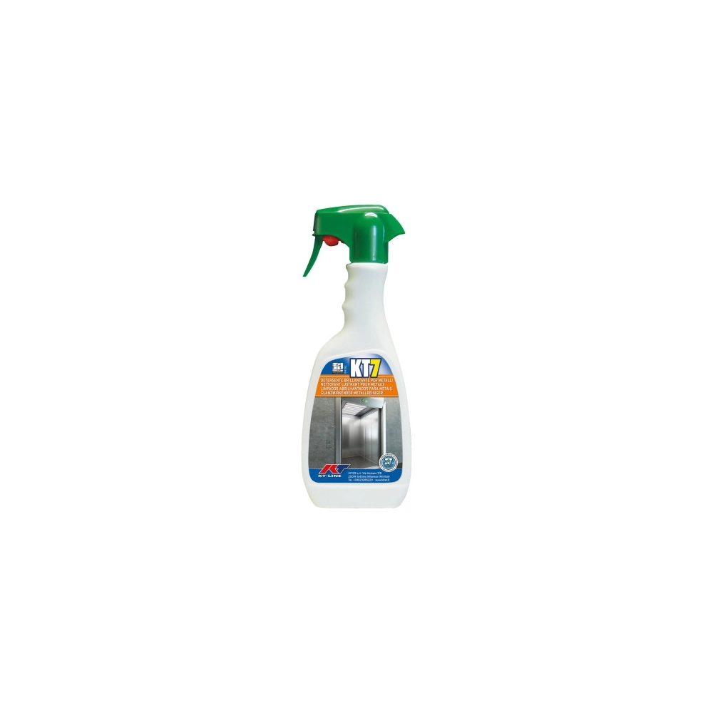 KT 7 è un detergente brillantante pronto all’uso specifico per acciai lucidi e satinati, alluminio e cromature.