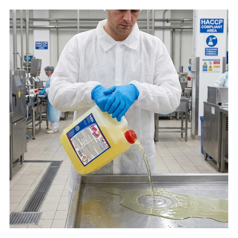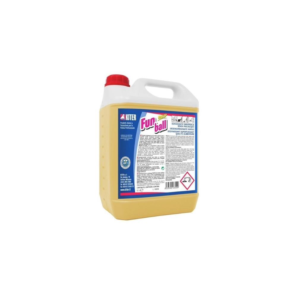 La sua formula combina solventi idrosolubili, tensioattivi non ionici, sequestranti, profumi e coloranti, garantendo una pulizia efficace senza residui. Il liquido è trasparente giallo, profumato floreale e completamente solubile in acqua. Il pH è di 12,5 ± 0,5 tal quale e di 10 ± 0,5 in soluzione d’uso. Fun Ball è biodegradabile secondo il Regolamento CE 648/2004 e conforme agli standard HACCP, IFS e BRC.