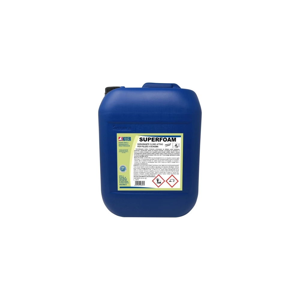 Superfoam è un clorodetergente alcalino fortemente schiumogeno ad altissimo potere sgrassante,igienizzante e deodorante.