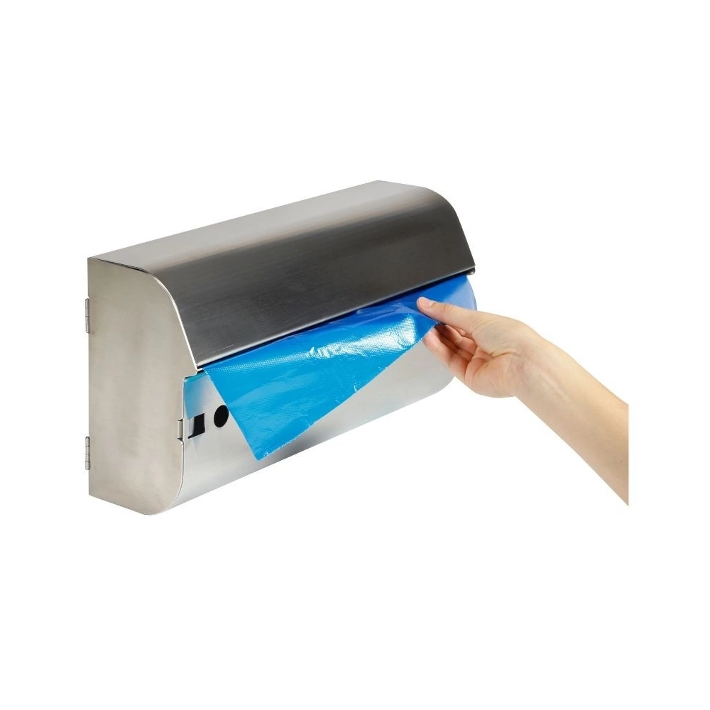 Dispenser in acciaio inox AISI 304 per l'inserimento di grembiuli in rotolo usa & getta: