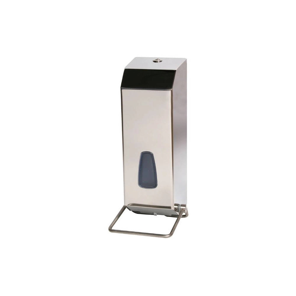 La leva lunga in acciaio inox AISI 304 consente un utilizzo pratico e sicuro anche con guanti. Dotato di serratura a chiave per impedire l’accesso non autorizzato e di un vetrino trasparente in materiale termoplastico ABS per il controllo del livello del sapone.