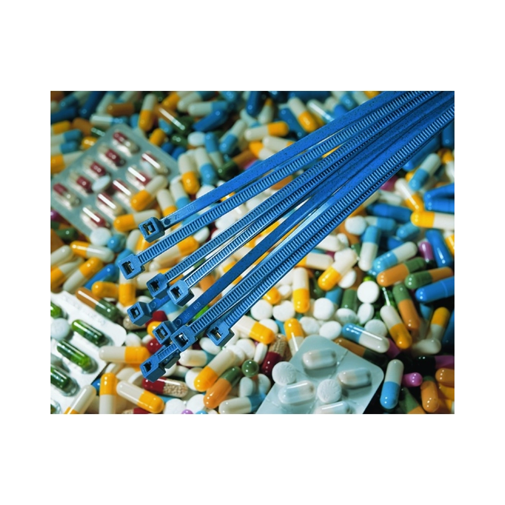 Queste fascette sono realizzate in poliammide 6.6 arricchite con una maggiore densità di pigmenti metallici rispetto alle fascette standard, caratteristica che ne migliora sensibilmente la rilevabilità nei sistemi di controllo. Questa combinazione, insieme al colore blu, consente di ridurre il rischio di contaminazione accidentale all’interno delle linee produttive.