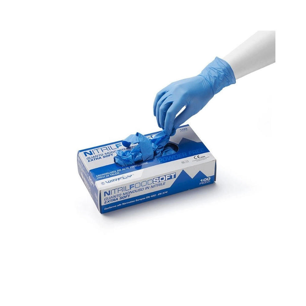 Guanti in nitrile per alimenti EXTRA SOFT AZZURRI 100 pz.
