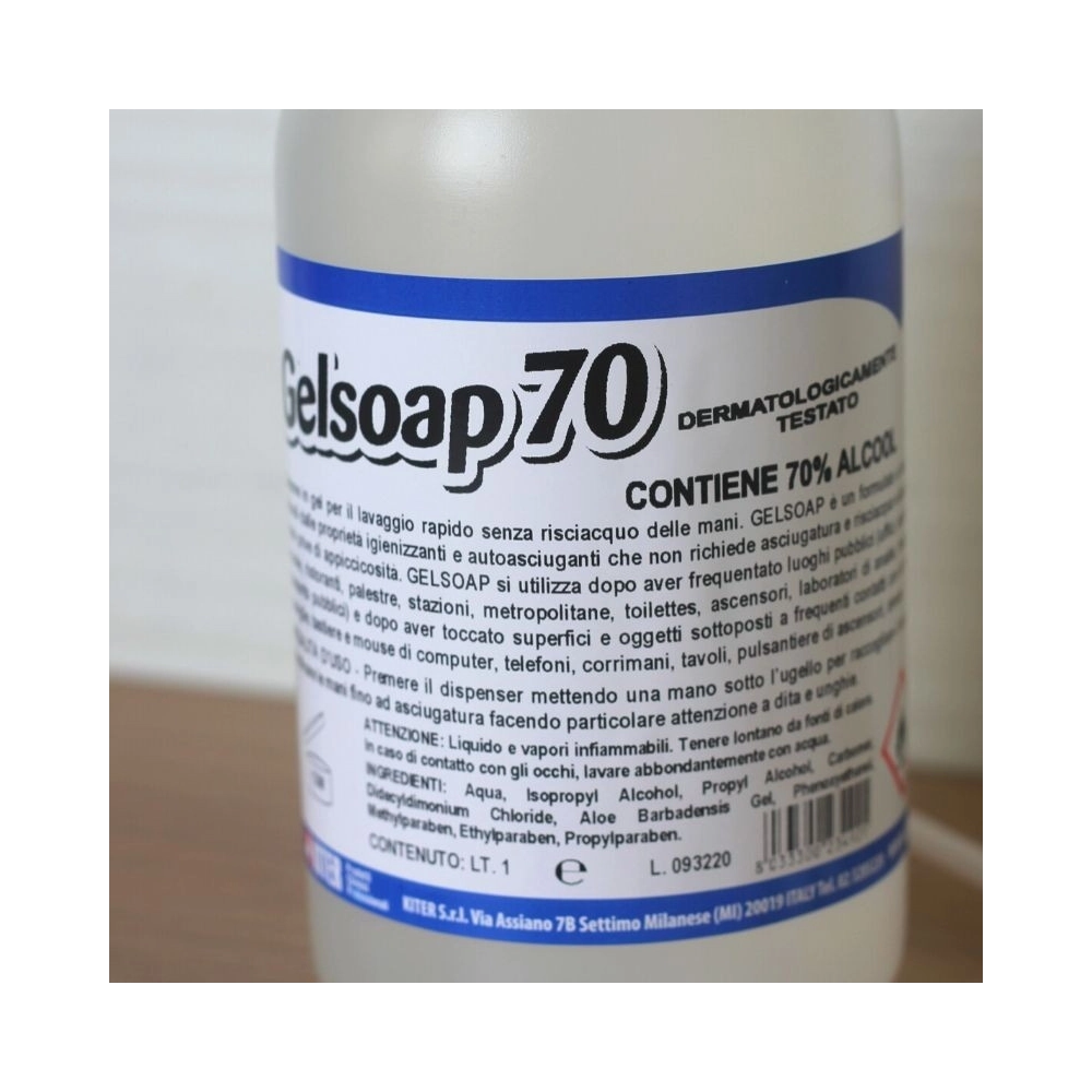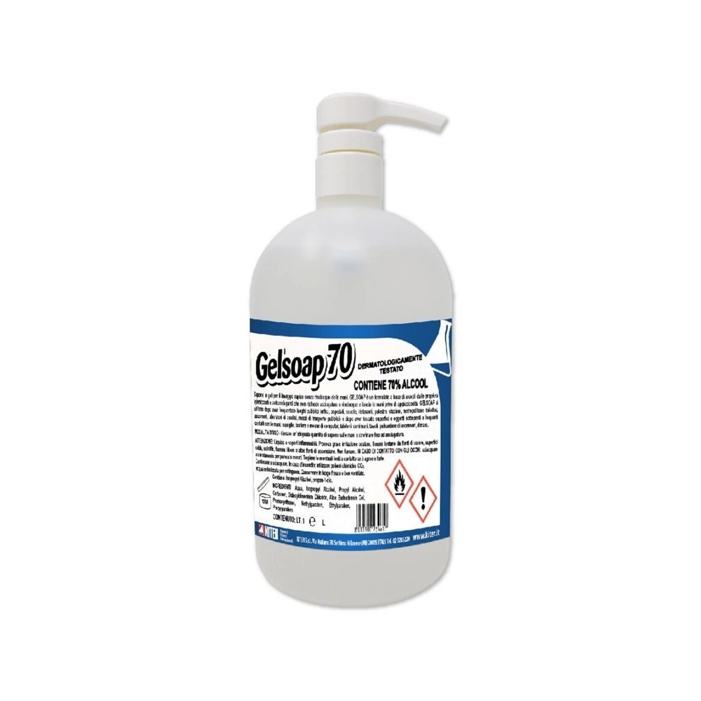 Un formulato a base di alcooli e di didecildimetil ammonio cloruro dalle proprietà igienizzanti e autoasciuganti che non richiede risciacquo e lascia le mani prive di appiccicosità. • E’ DERMATOLOGICAMENTE TESTATO • CONTIENE ALOE VERA DALL’EFFETTO IDRATANTE E LENITIVO •NON CONTIENE PROFUMI: •per evitare qualsiasi fenomeno di allergenicità e/o fenomeni di scarsa compatibilità con la cute o degradazione •può essere utilizzato anche dal personale dei settori ospedalieri e alimentare. L’impiego di Gelsoap70 garantisce una azione igienizzante immediata e ad ampio spettro.