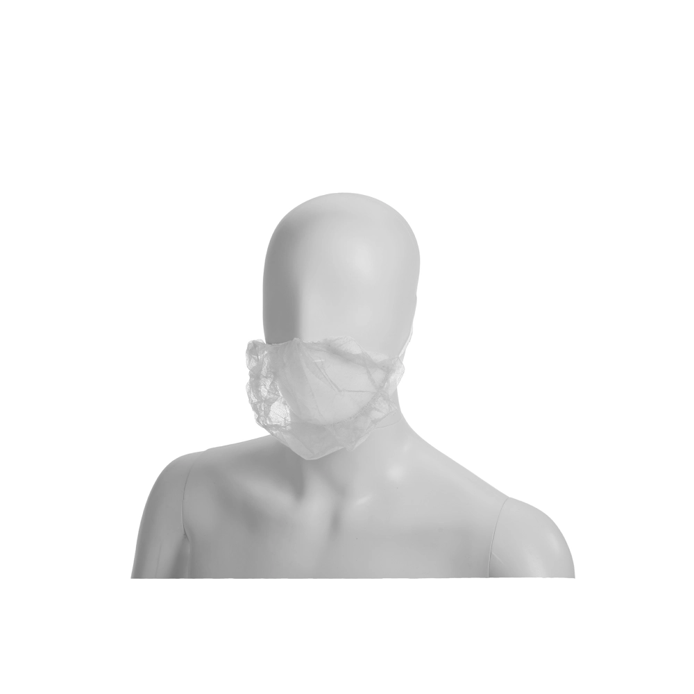 Realizzato in TNT., un materiale leggero, traspirante e anallergico, offre una copertura morbida e confortevole anche per un uso prolungato. Il design semplice ma funzionale include un elastico posizionato sulla nuca, che garantisce una tenuta stabile, senza bisogno di ulteriori regolazioni. La struttura aperta lascia libera la zona superiore del viso, permettendo di indossare il copribarba insieme ad altri dispositivi di protezione come mascherine, cuffie o visiere.