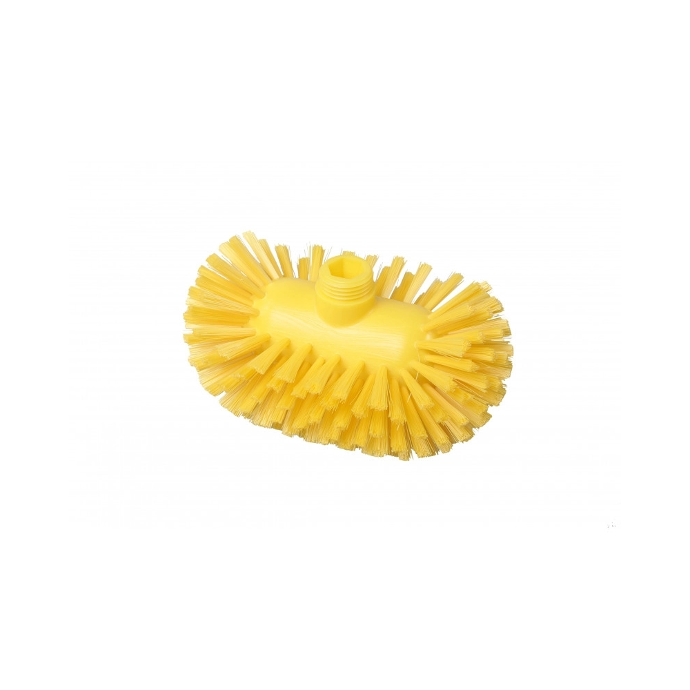 La struttura radiale consente una distribuzione uniforme delle setole intorno alla testa della spazzola, permettendo di raggiungere facilmente ogni angolo e superficie interna o esterna delle taniche, anche quelle con geometrie complesse.