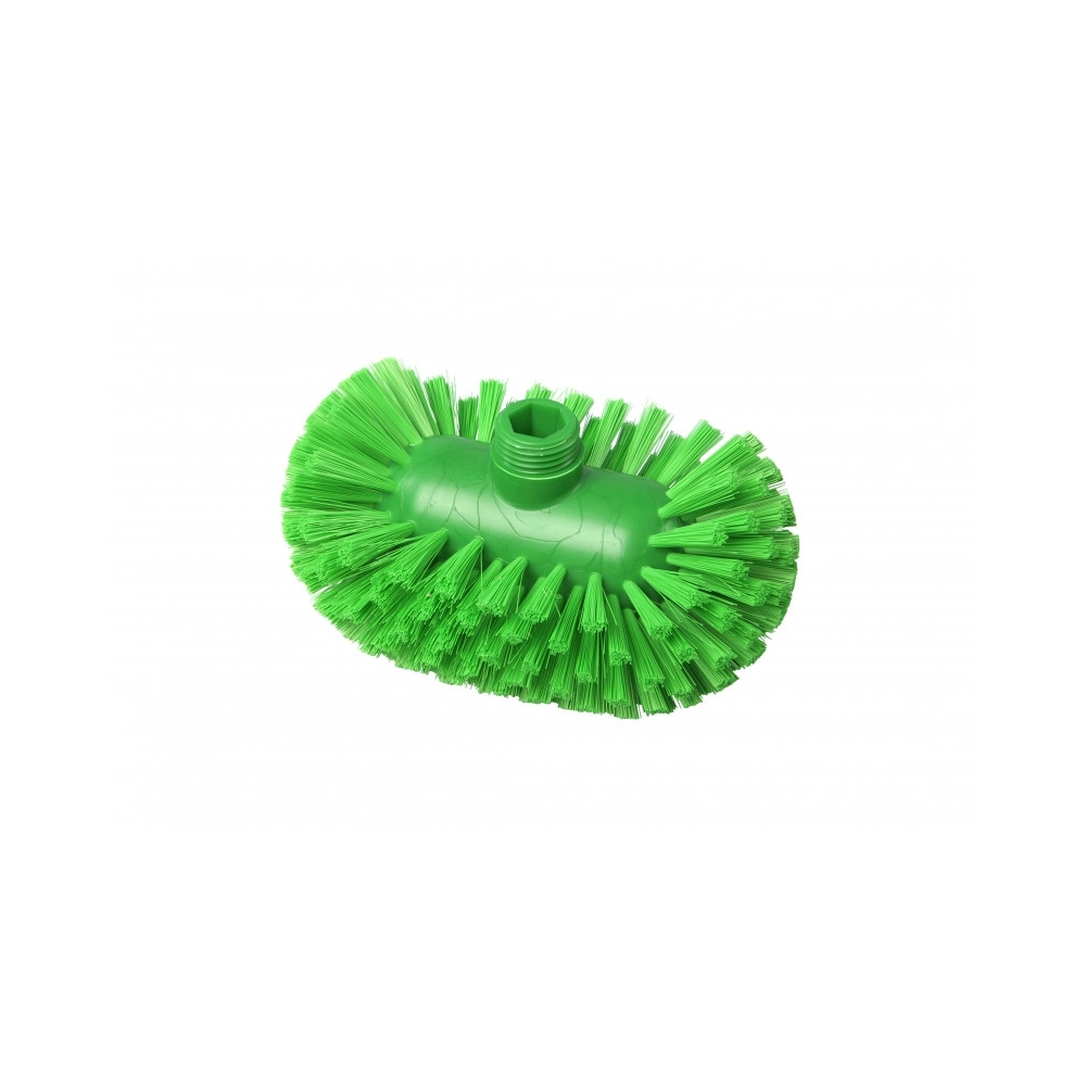 La struttura radiale consente una distribuzione uniforme delle setole intorno alla testa della spazzola, permettendo di raggiungere facilmente ogni angolo e superficie interna o esterna delle taniche, anche quelle con geometrie complesse.