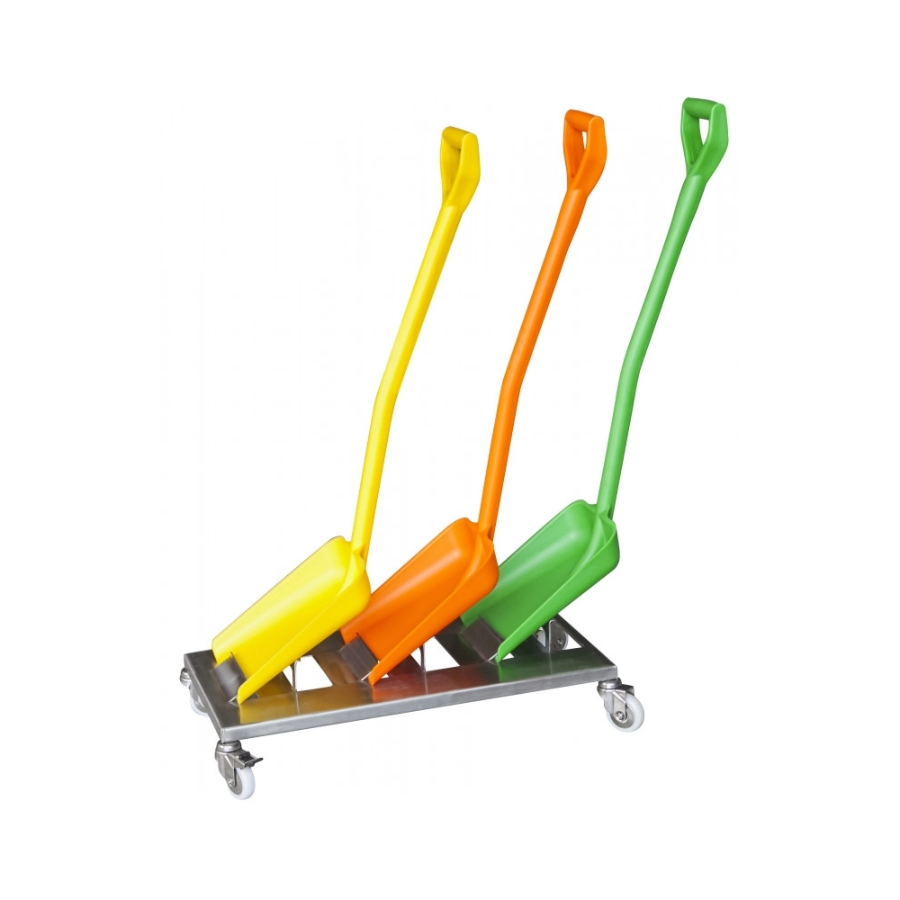 Supporto in acciaio inox dotato di quattro ruote piroettanti in acciaio inox, di cui due con freno, per garantire massima mobilità e stabilità.