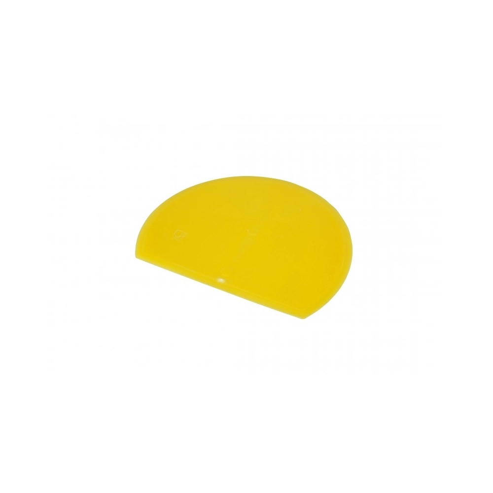 Spatola a mezzaluna in plastica alimentare, progettata per offrire massima efficacia nella raschiatura di superfici curve e contenitori sagomati.