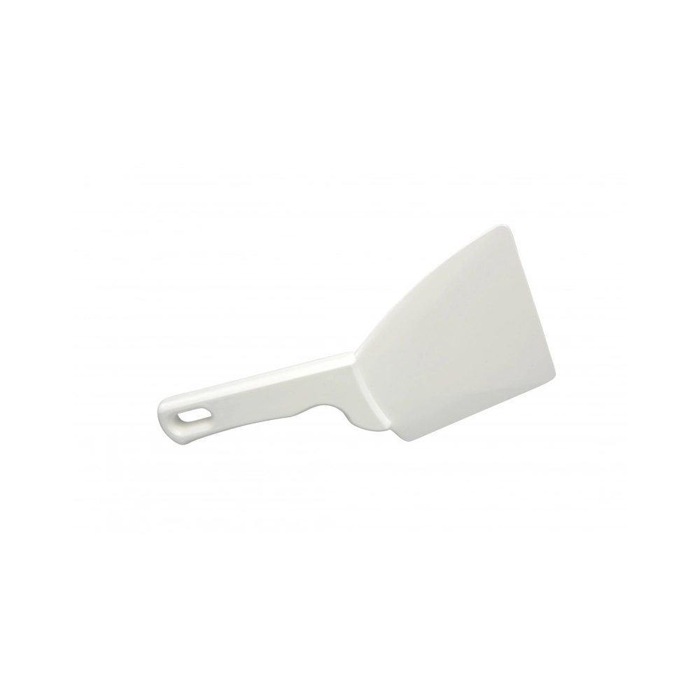 Spatola in polipropilene progettata per un utilizzo efficiente su entrambi i lati, ideale per operazioni di raschiatura, raccolta e movimentazione di ingredienti, impasti o residui di lavorazione.