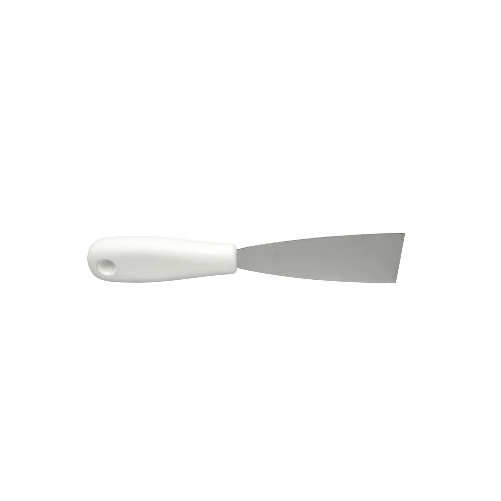 Spatola professionale con lama rigida da 40 mm in acciaio inox, pensata per offrire massima efficacia nelle operazioni di raschiatura e pulizia su superfici dure o con incrostazioni.