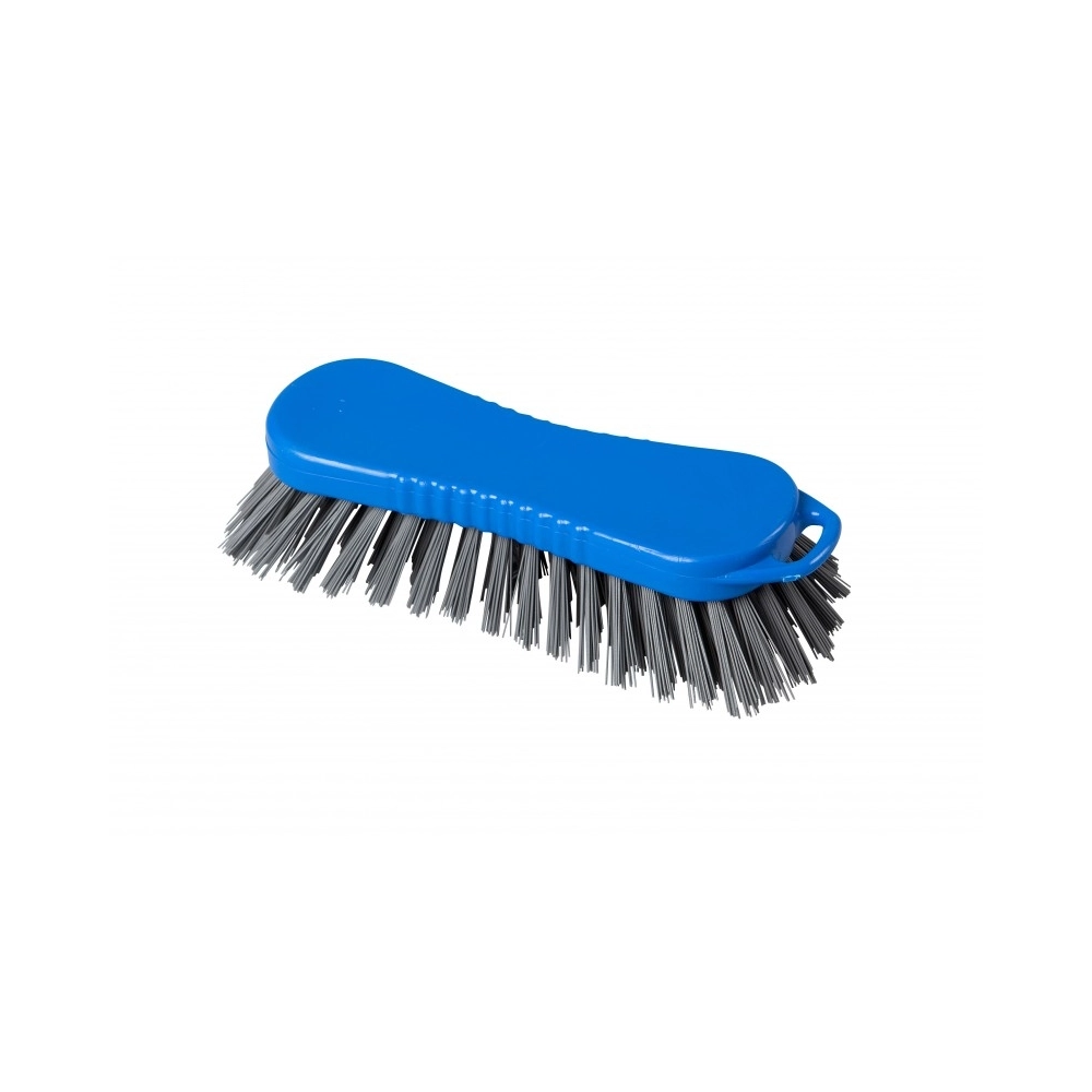Il corpo è realizzato in polipropilene blu (non detectabile), un materiale resistente e di facile igienizzazione, mentre le setole in poliestere PBT con spessore 0,60 mm (fibra dura), di colore grigio, garantiscono efficacia nella rimozione dello sporco più ostinato e lunga durata anche in caso di uso intensivo.