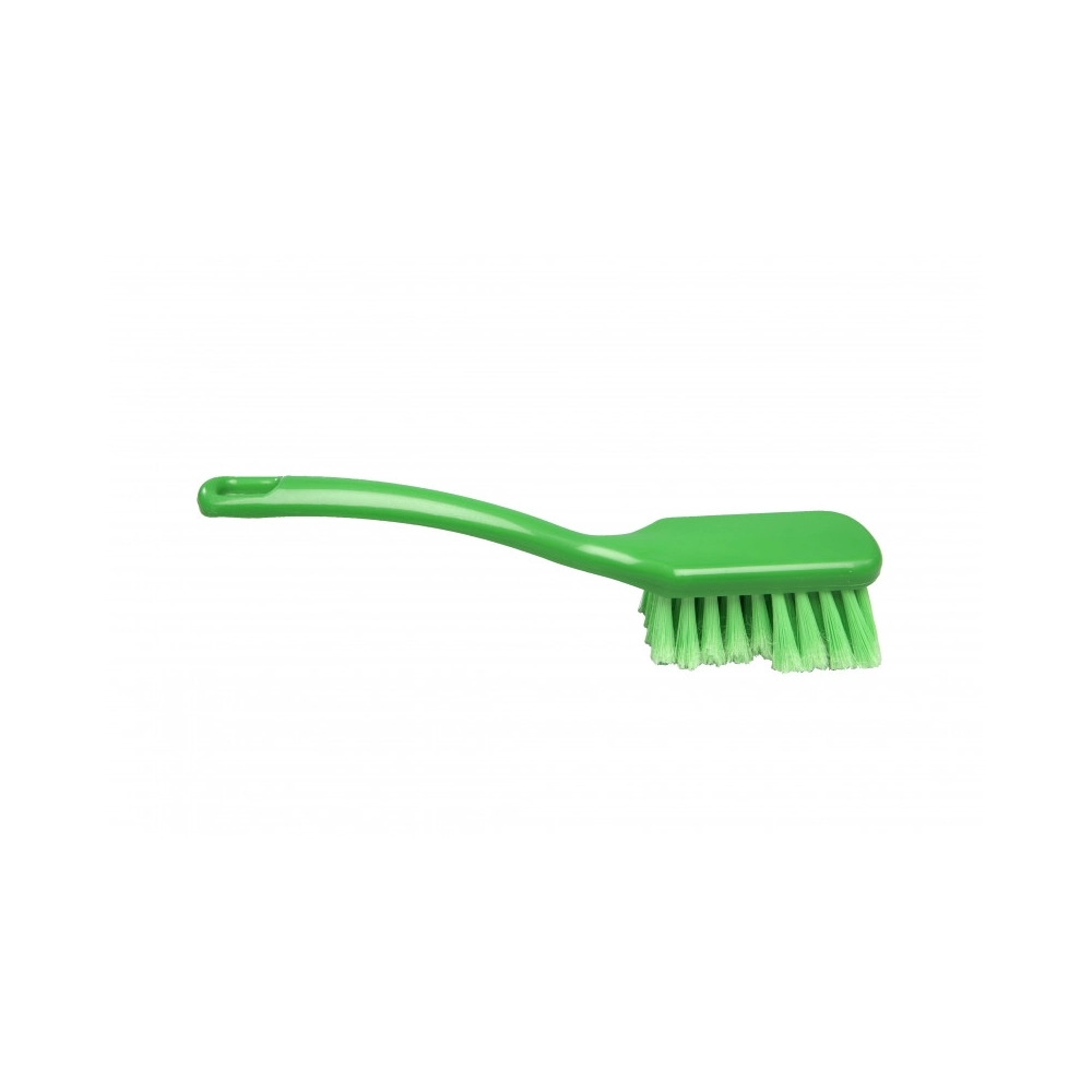 Le setole di durezza media consentono un’efficace rimozione dello sporco senza danneggiare le superfici, rendendola adatta a molteplici tipi di applicazioni, dal lavaggio di piani di lavoro e attrezzature alla pulizia di contenitori, utensili e superfici delicate.