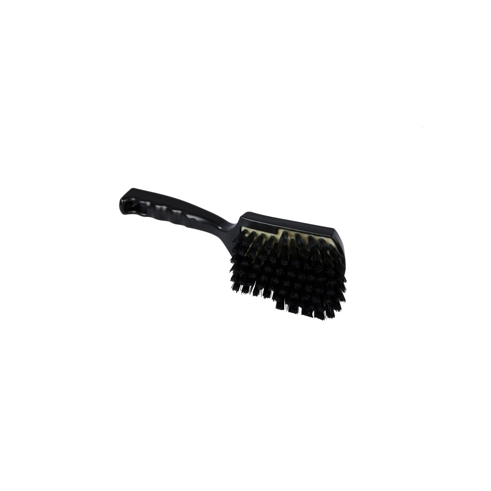 Spazzola resinata con manico corto e setole dure, sviluppata per offrire prestazioni elevate in contesti dove è necessaria una pulizia energica e profonda.