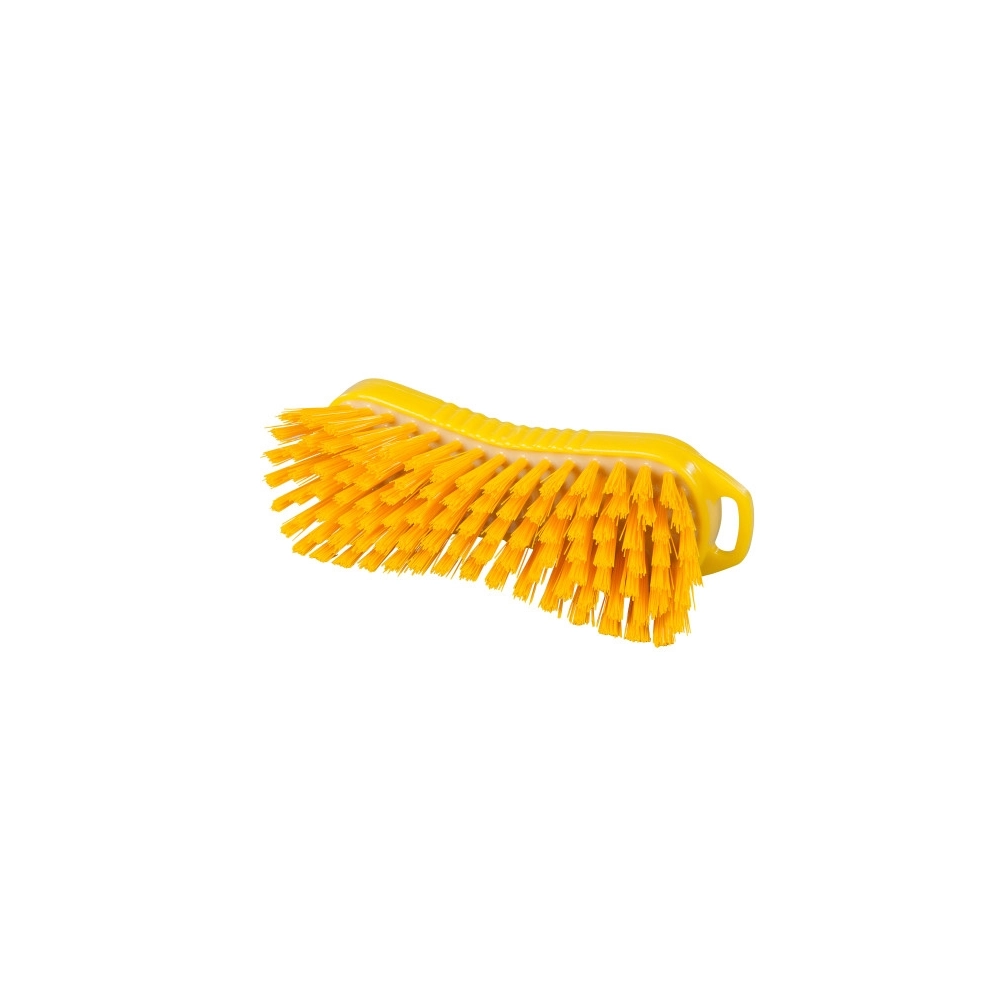 Le setole dure permettono un’azione abrasiva efficace su superfici ruvide, incrostazioni o sporco ostinato, rendendo questa spazzola ideale per ambienti professionali con elevati standard di pulizia.