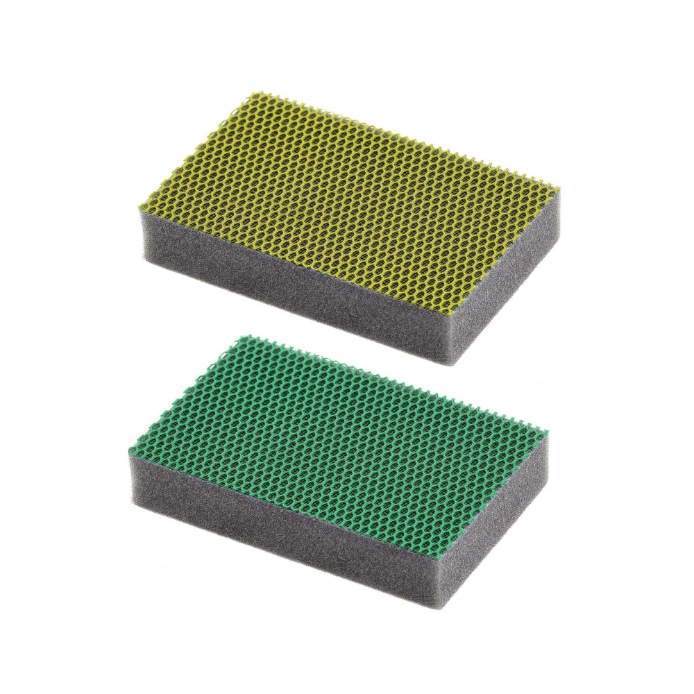 Dotata di una speciale fibra colorata blu con supporto nero ad alta resistenza, questa spugna rimuove lo sporco in profondità senza graffiare o danneggiare le superfici trattate.