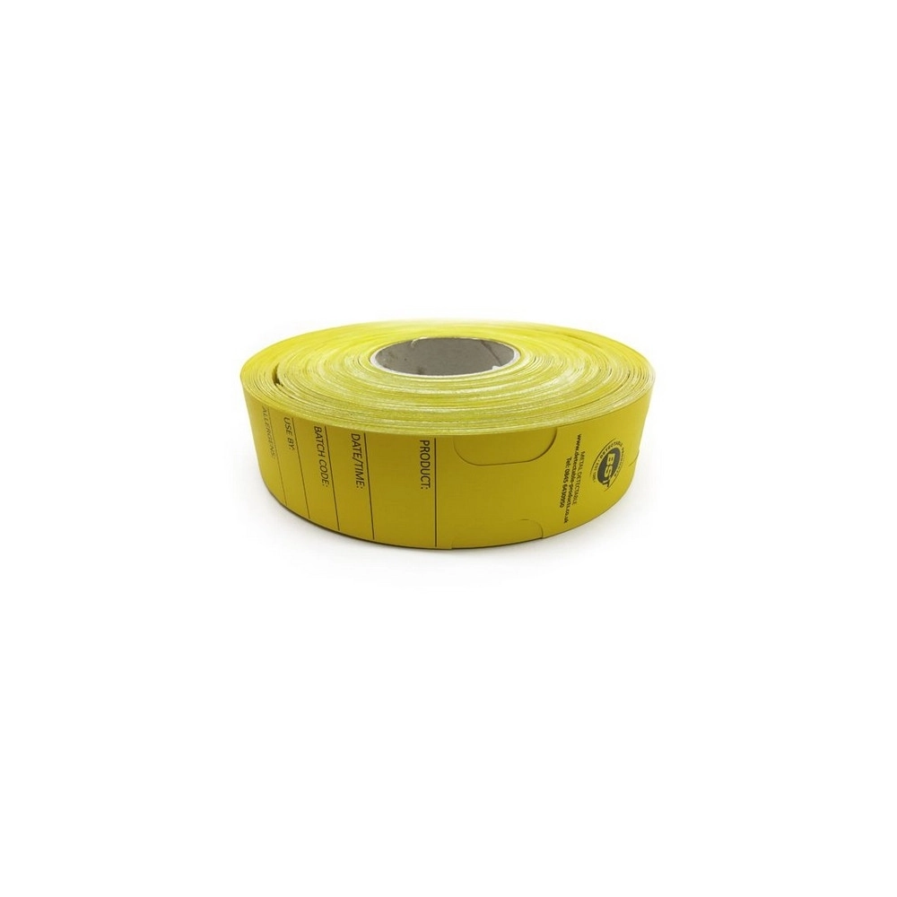 Targhette in rotolo rilevabili al metal detector.